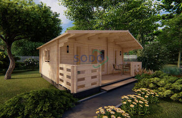 Cabane en bois de sapin naturel avec 1 chambre, salle de bain et salon. Espace utile 24 m². Elle intègre une terrasse de 1,5 mètre, parfaite pour savourer un bon petit déjeuner, repas ou dîner. Son espace pratique et fonctionnel en fait la meilleure option comme maison de week-end ou chalet de location pour camping ou gîte rural. La maison peut se décliner en 2 configurations: «Economy» et «Premium». Si vous choisissez le kit de classe Premium (dans les paramètres ci-dessous), nous vous ferons une maison avec: -Porte plus haute (200 cm de hauteur) -Fenêtres et portes de meilleure qualité -Mur 13 cm plus haut * La maison montrée sur les photos est Premium