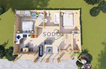 This house is designed with style and functionality in mind, offering a great space for both relaxing and entertaining. The triangular windows provide a unique and contemporary look, while the spacious master bedroom offers a comfortable retreat after a long day. Overall, this 3-bedroom house is a perfect blend of form and function, making it a great choice for anyone seeking a modern and comfortable home.