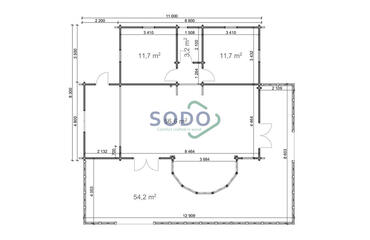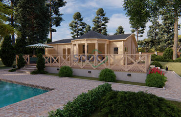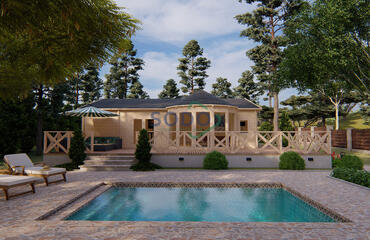 This spacious and exclusive summer house-villa boasts an exceptional big terrace, high windows, and a big living room. It has two bedrooms, a WC room, and a rounded shape dining area with big windows, adding to its stylish design. The house is perfect for relaxation and pleasure, with its ultimate holiday house design. The rounded shape of the dining area and the high windows create a unique and inviting atmosphere, making it a perfect place to entertain guests or relax with family. Overall, this house is the ultimate holiday retreat, providing comfort and luxury in a beautiful setting.