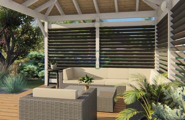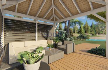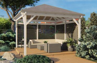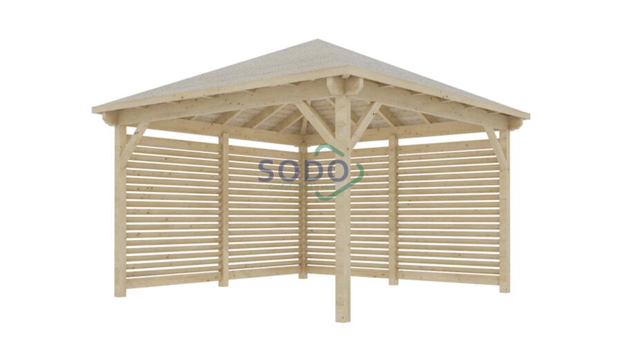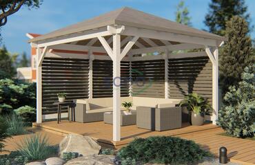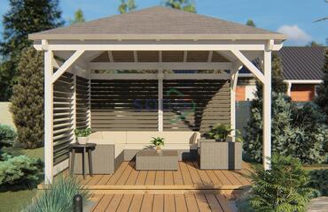 Keturšlaitė pavėsinė su dekoratyvinėmis sienelėmis.